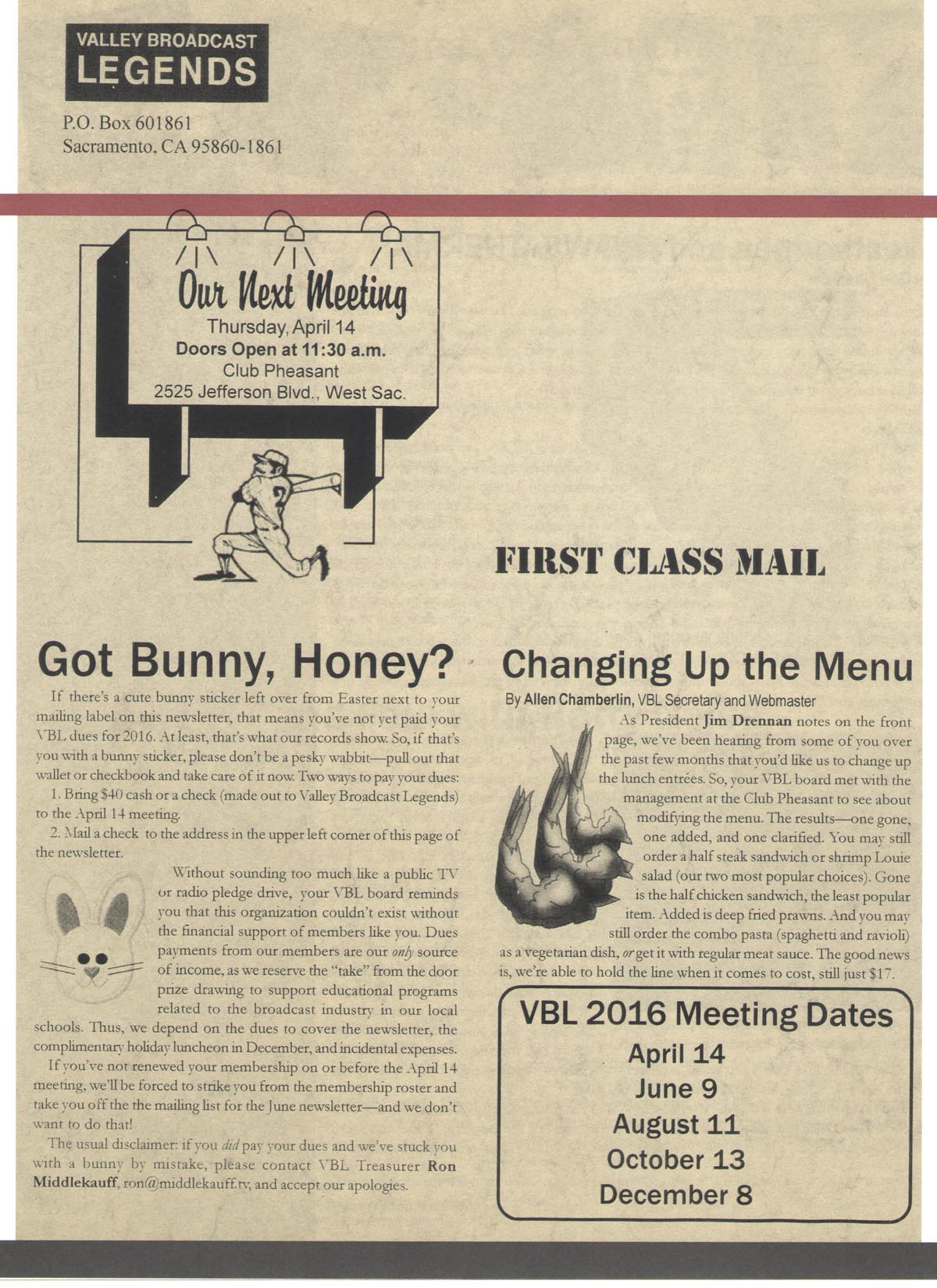 April 2016 Newsletter